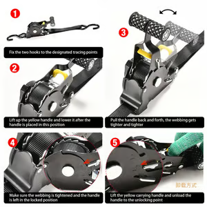 Convenient Handling: Effortlessly organize and transport cargo with our retractable ratchet straps. Our innovative design eliminates tangled straps and simplifies tensioning, ensuring convenient handling and fast recoiling for easy use.