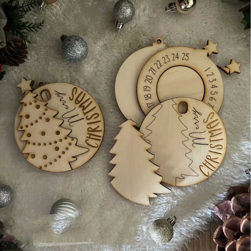 Key Features: 🎁 Customizable Cutouts: Choose from a wide variety of cutting patterns to personalize your ornament – from reindeer and snowflakes to your family name.