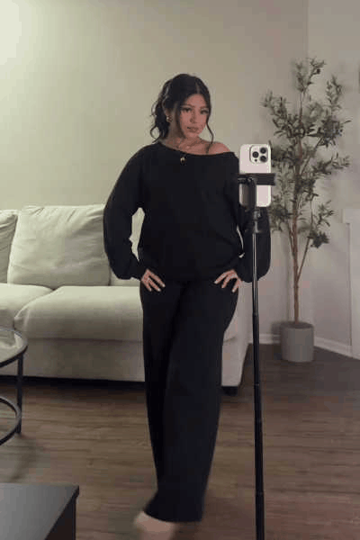 • Wide-leg trousers flatter: The flowing wide-leg trousers perfectly conceal leg lines, easily hiding any issues with leg shape, muscle definition, or thick calves. The trousers sway naturally with movement, creating a relaxed and effortless look while elongating the lower body.