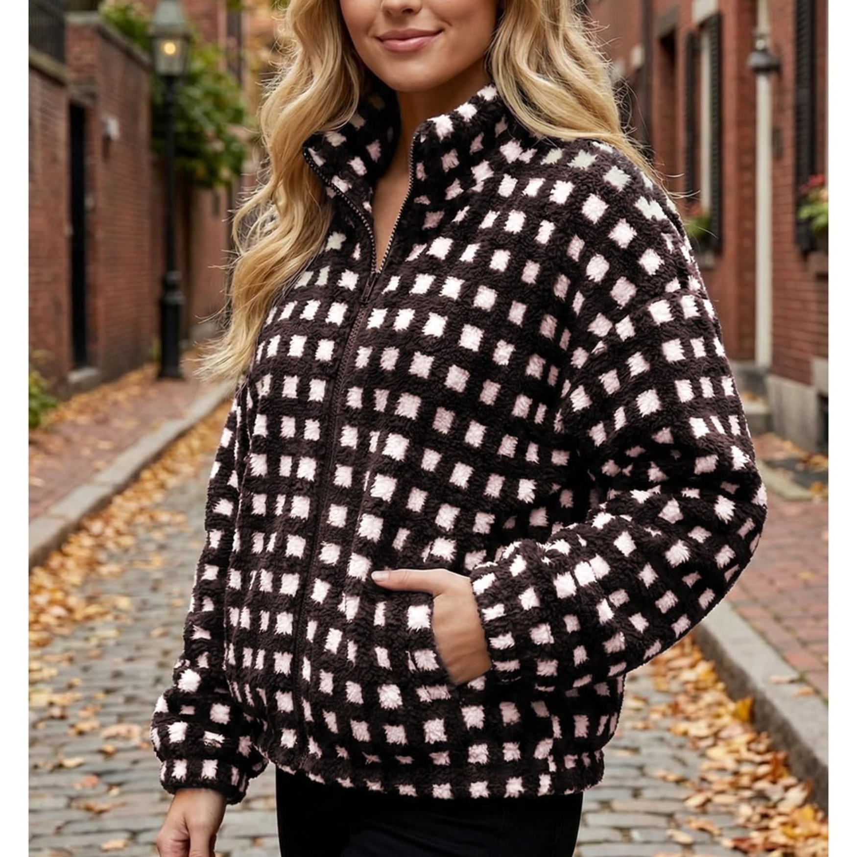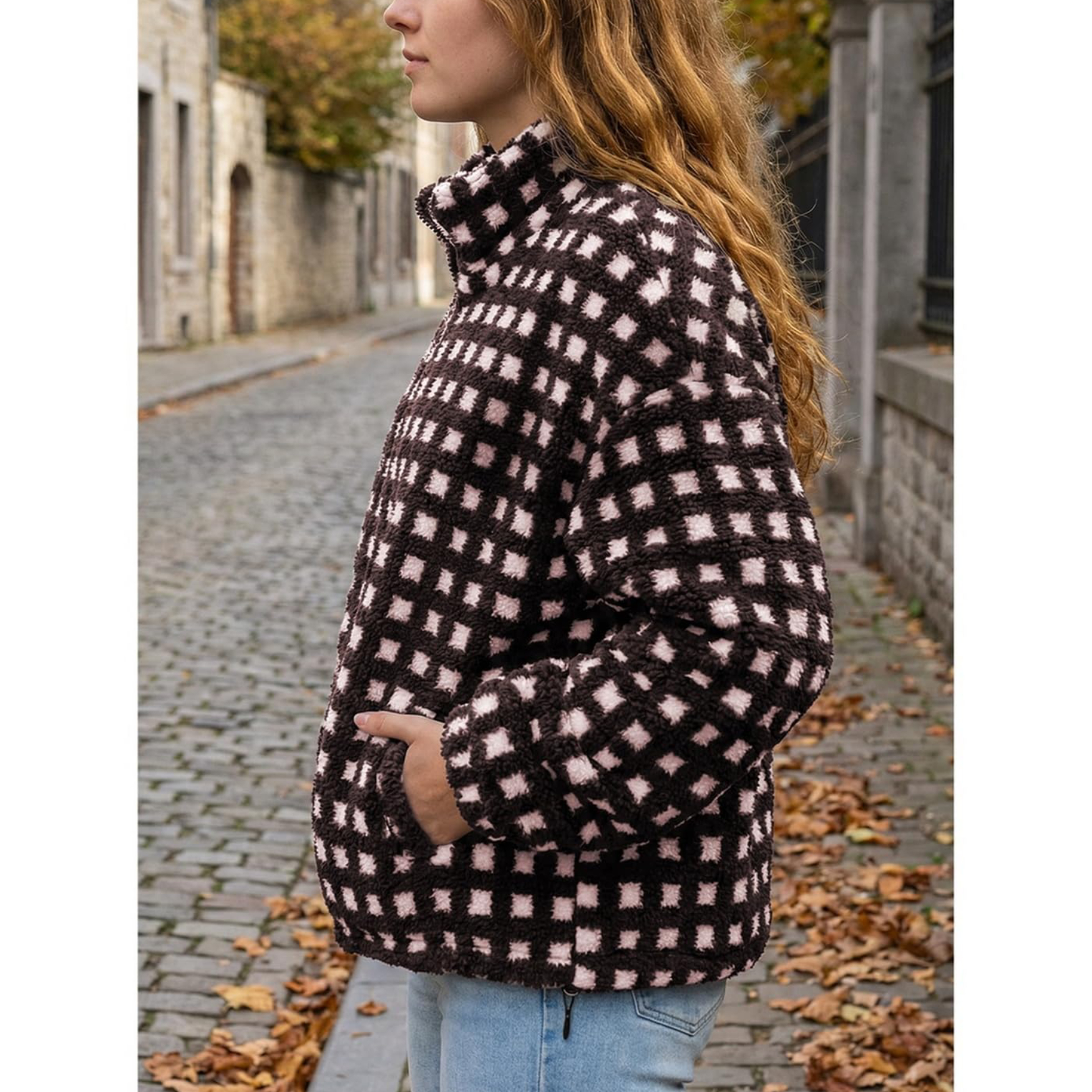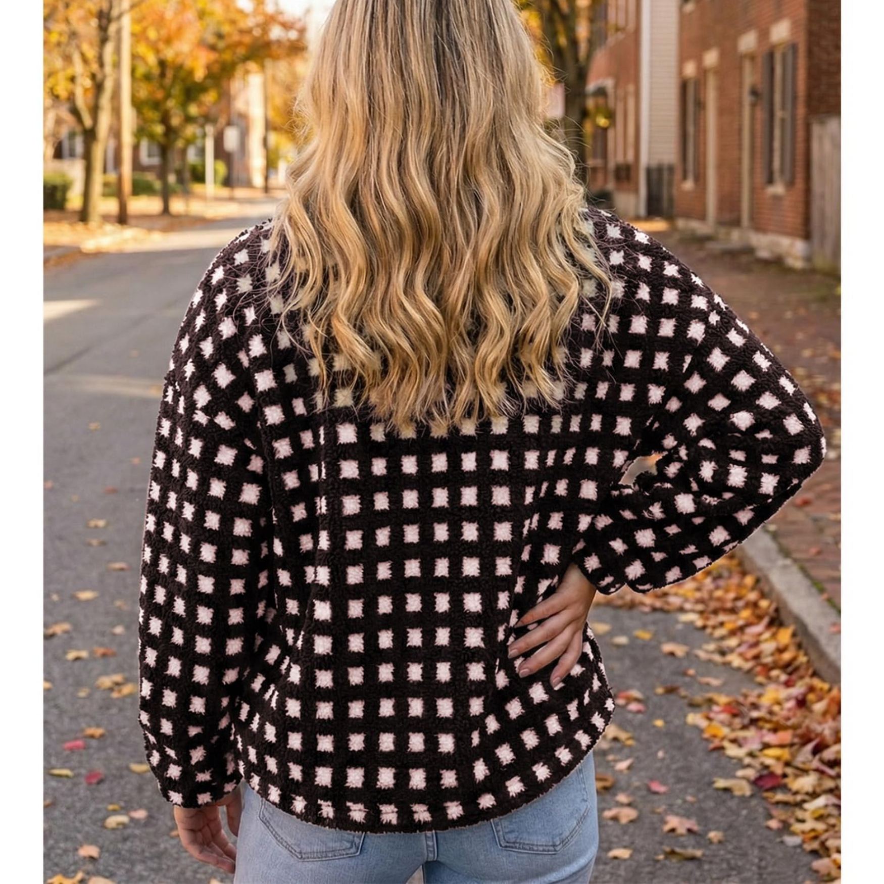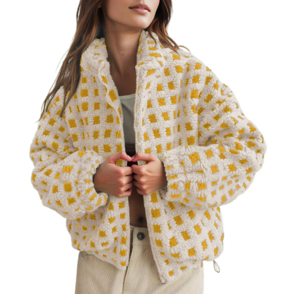 ⏰Hot Sale-Womens Checkered Sherpa Plaid Fleece Jacket with Pockets