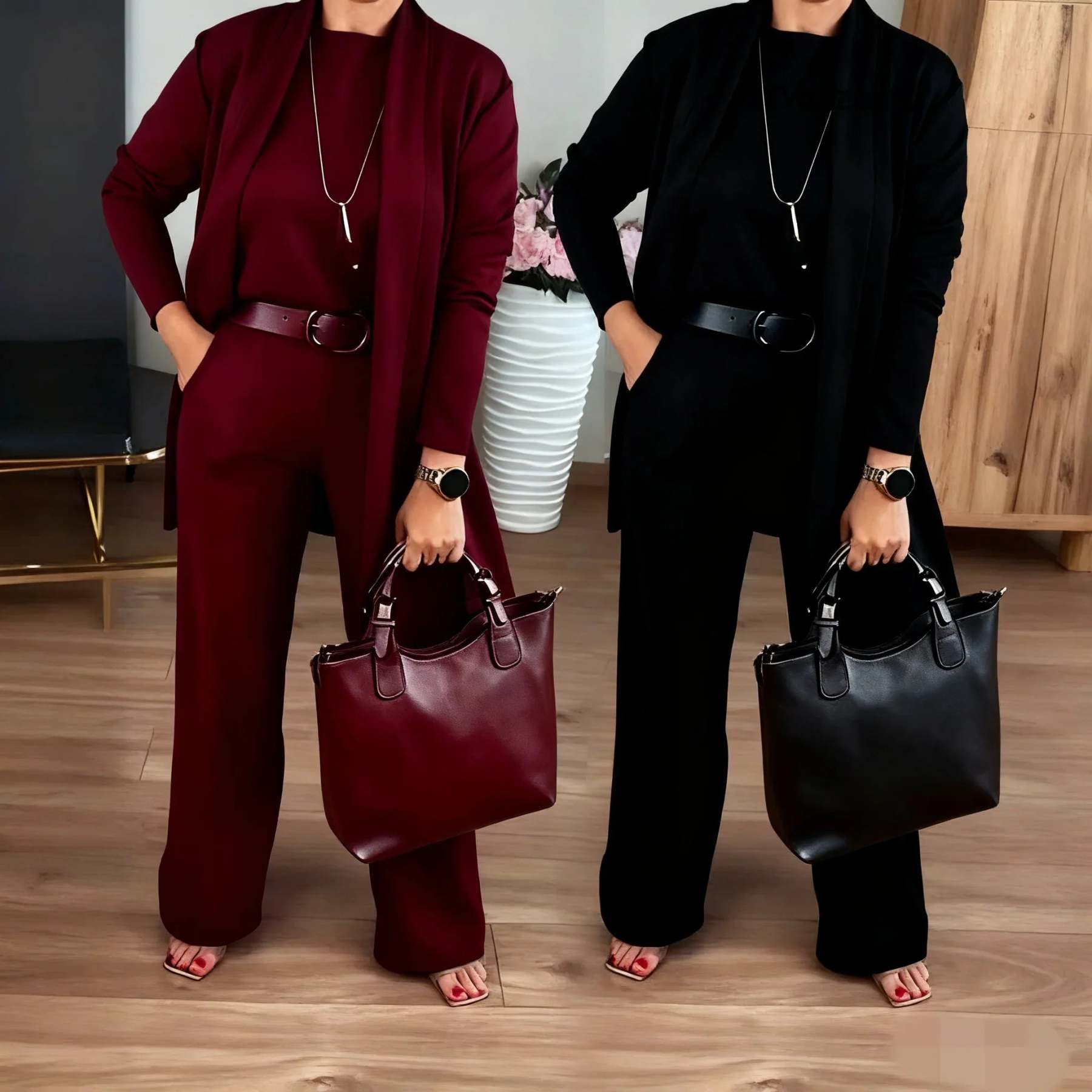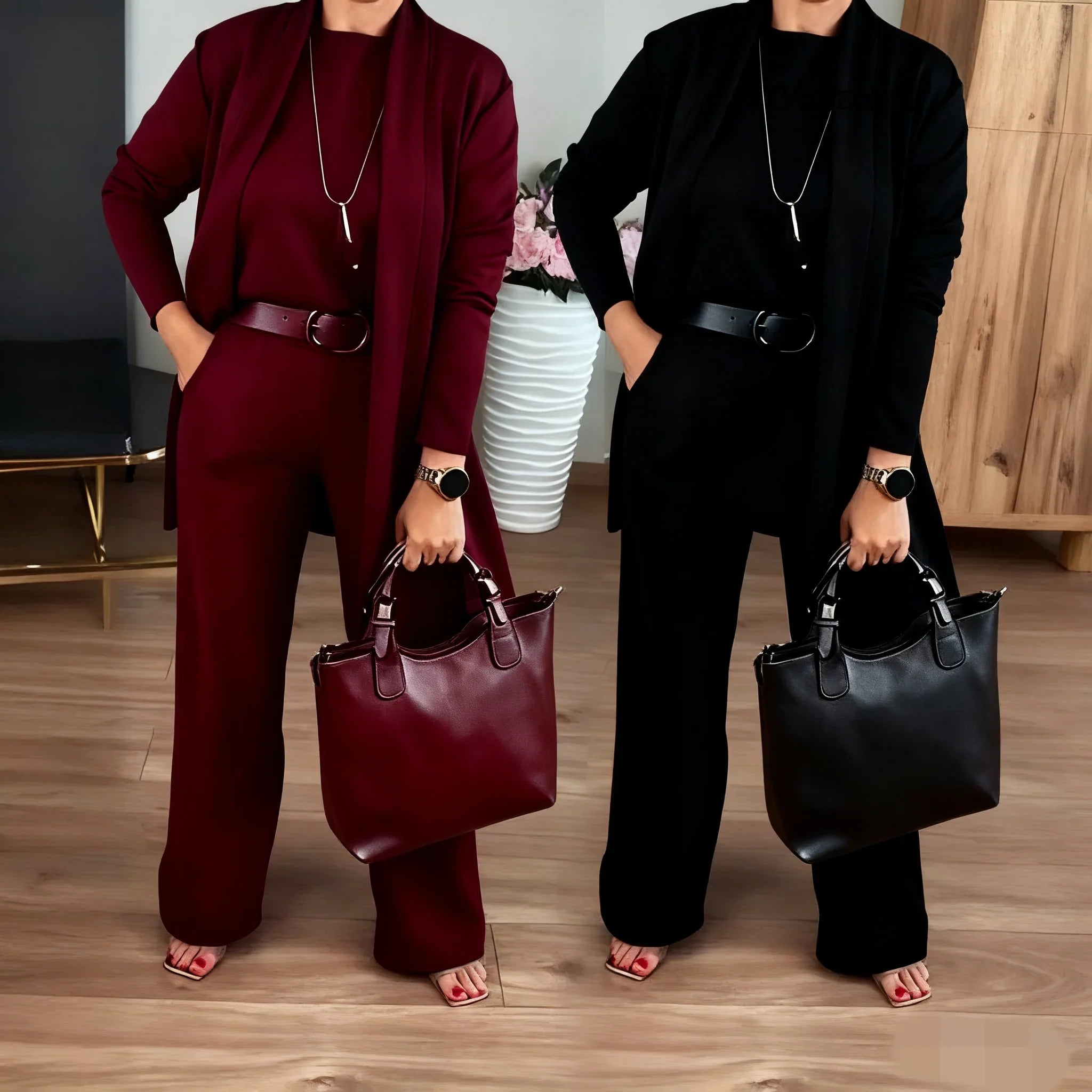 💥Elegant 3-piece set including long cardigan, top and pants💞